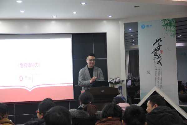 2月2日上午,雨兰商学院第一课在公司总部正式开讲。一位优秀的企业员工必定是终身学习的模范,他永远不会满足已有的成就,而突破原有的知识水平、基本技能及思维定势的最佳途径,就是参加培训,不断学习。对于高速发展中的企业而言,最不可忽视的是“人本投资”,人才培训是提高企业“造血功能”的根本途径。对此,公司高层非常重视雨兰商学院的长远发展,商学院的第一课由公司副总经理桂榛先生亲自上阵,为公司经理级的员工做最有效的落地培训——《危机领导力》。