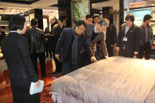 雨兰董事长、总经理桂秋宇先生携公司高层管理人员陪同中纺联一行领导来到总部的艺术中心、生产一线、员工活动中心进行了参观,并详细介绍了“雨兰”品牌 “新中式床品”定位、文化品牌优势、企业运作模式等方面的内容。中纺联一行领导非常认可“雨兰”品牌走文化家纺线路,赞赏企业发扬中国文化的信心,为家纺行业带来一道独树靓丽的风景线。